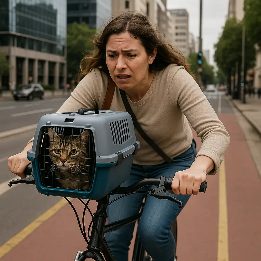 No hay problema. Cuenta con un gancho interno de seguridad que se conecta al arnés o collar, evitando que salte o se caiga, incluso durante paseos en moto o bicicleta.